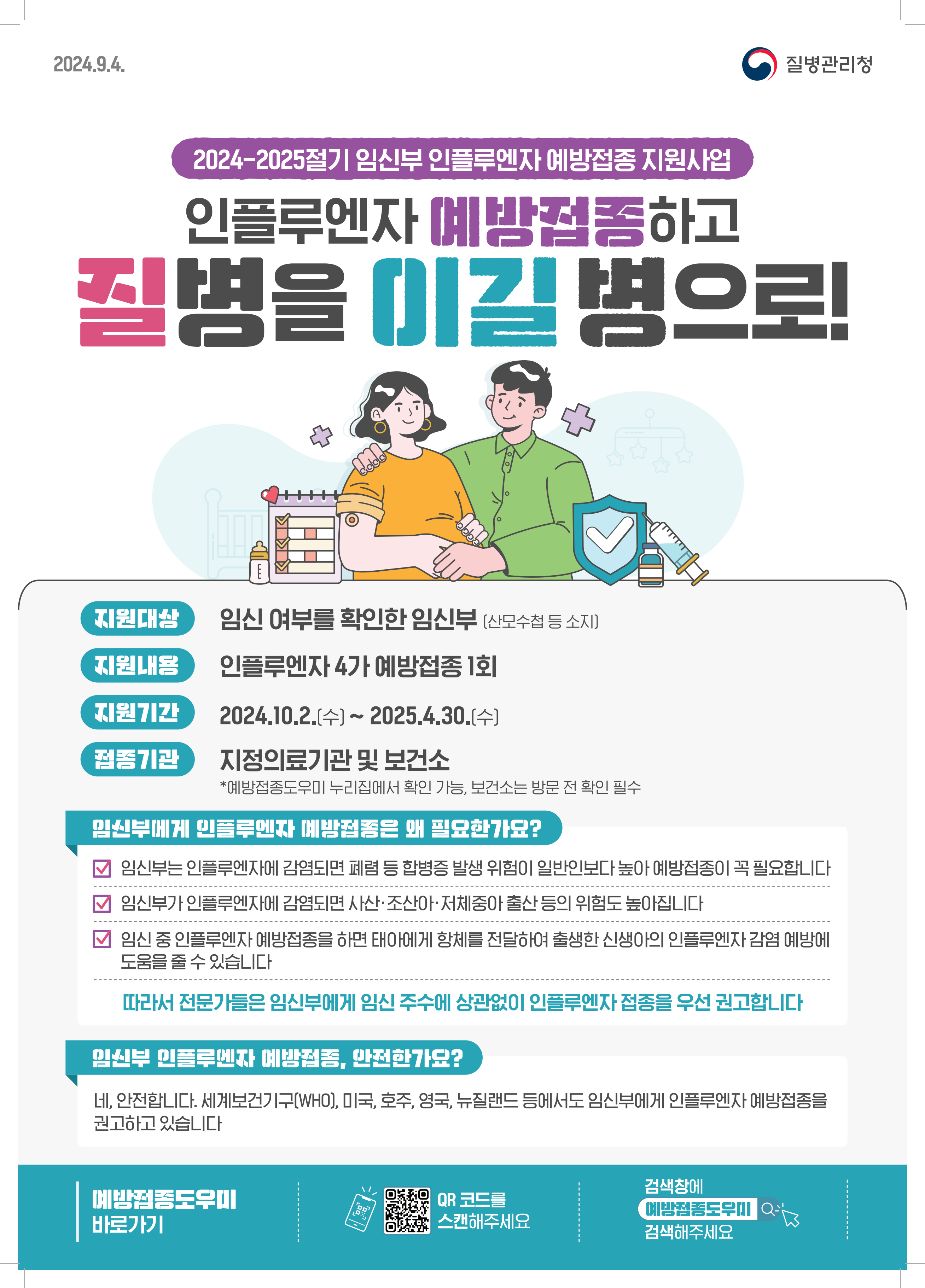 임신부 : 2024년 9월 22일부터 2025년 4월 30일까지 접종 가능
