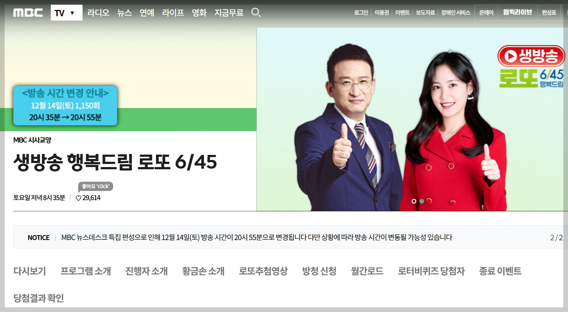 로또 추첨 방송은 MBC 채널을 통해 시청할 수 있습니다.