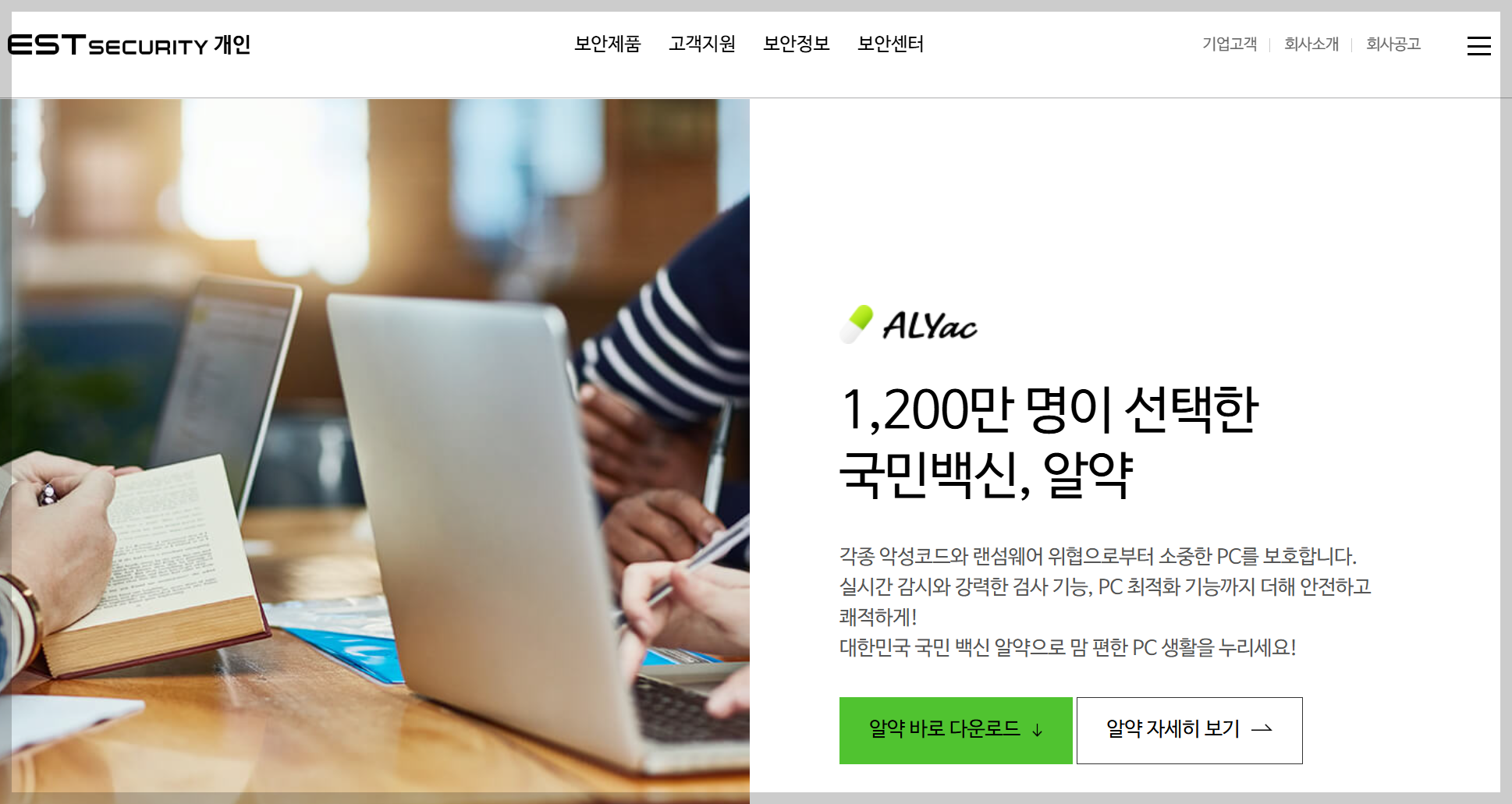 • 1,200만 사용자의 선택: 이미 많은 사람들이 알약으로 안전하게 PC를 지키고 있어요.