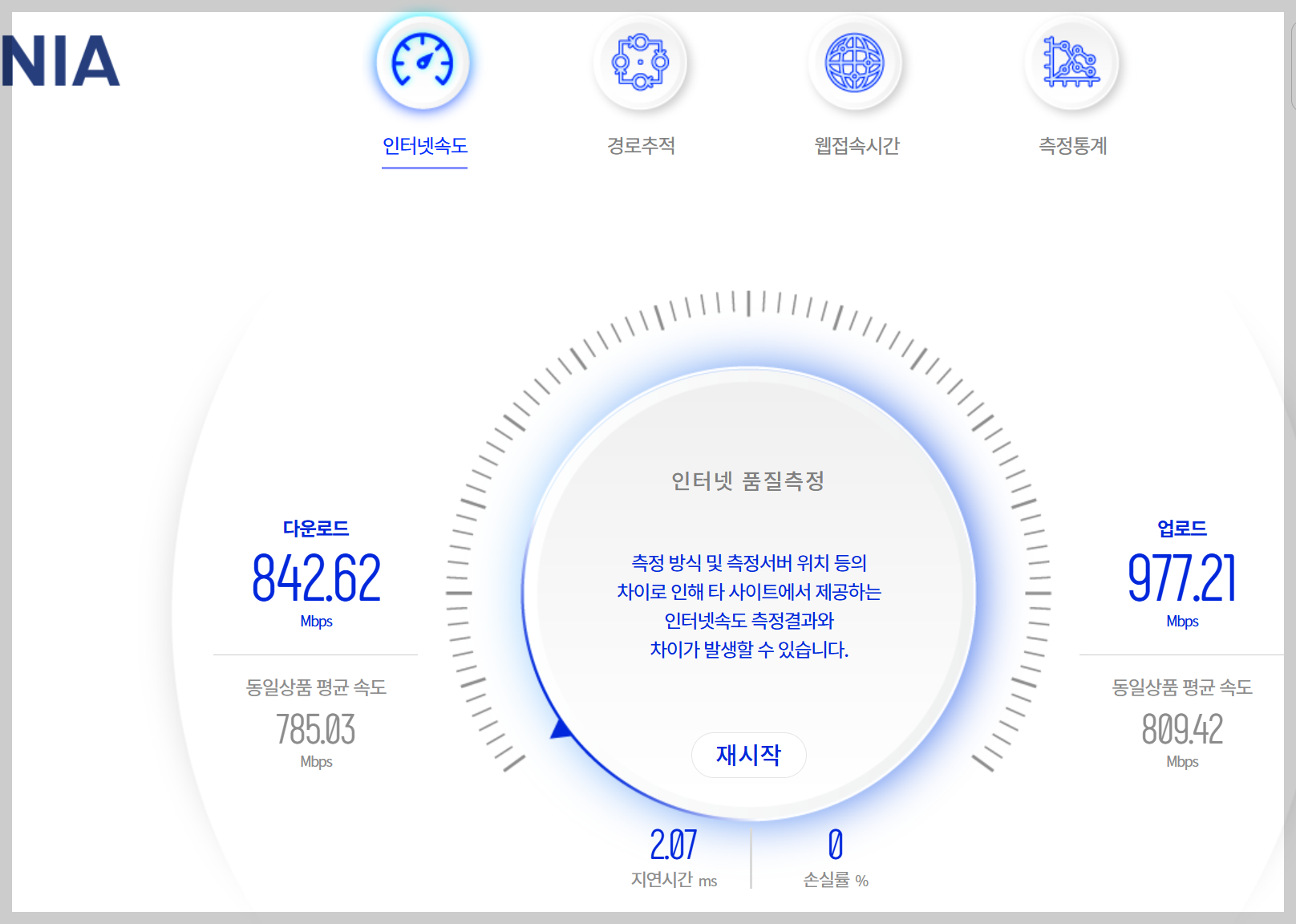 3. NIA 인터넷품질측정: