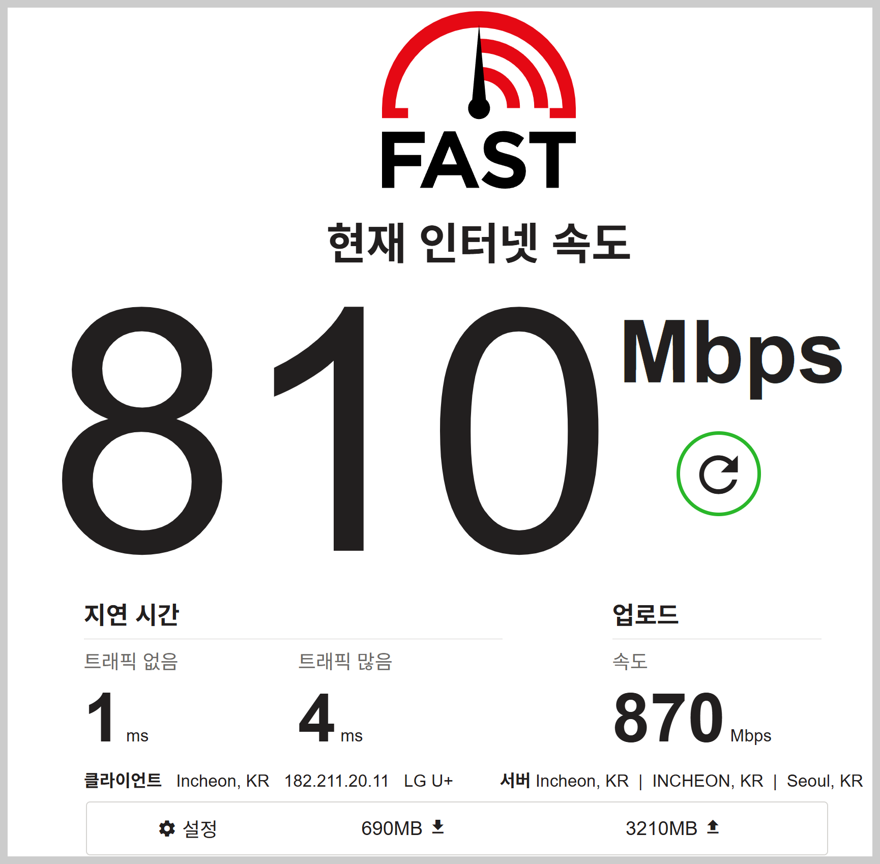넷플릭스에서 만든 서비스로, 간편하게 속도를 측정할 수 있습니다. 특히 영상 스트리밍에 최적화되어 있어요.