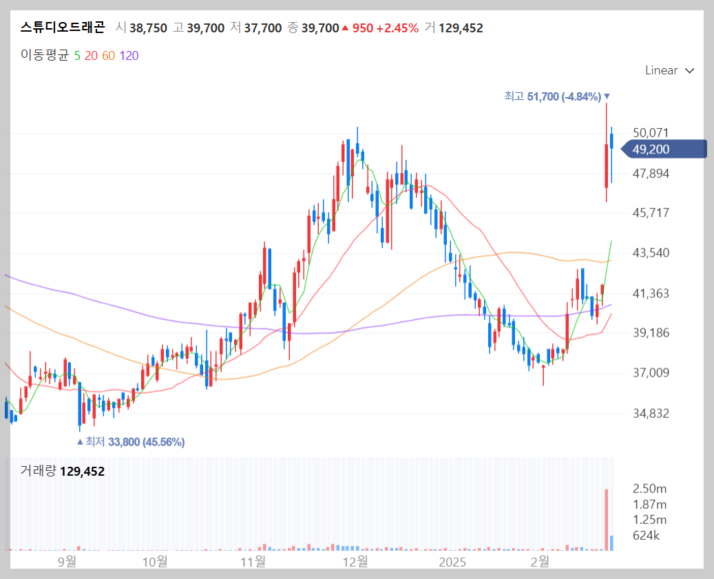 스튜디오 드래곤 주가 / 출처: 네이버페이 증권