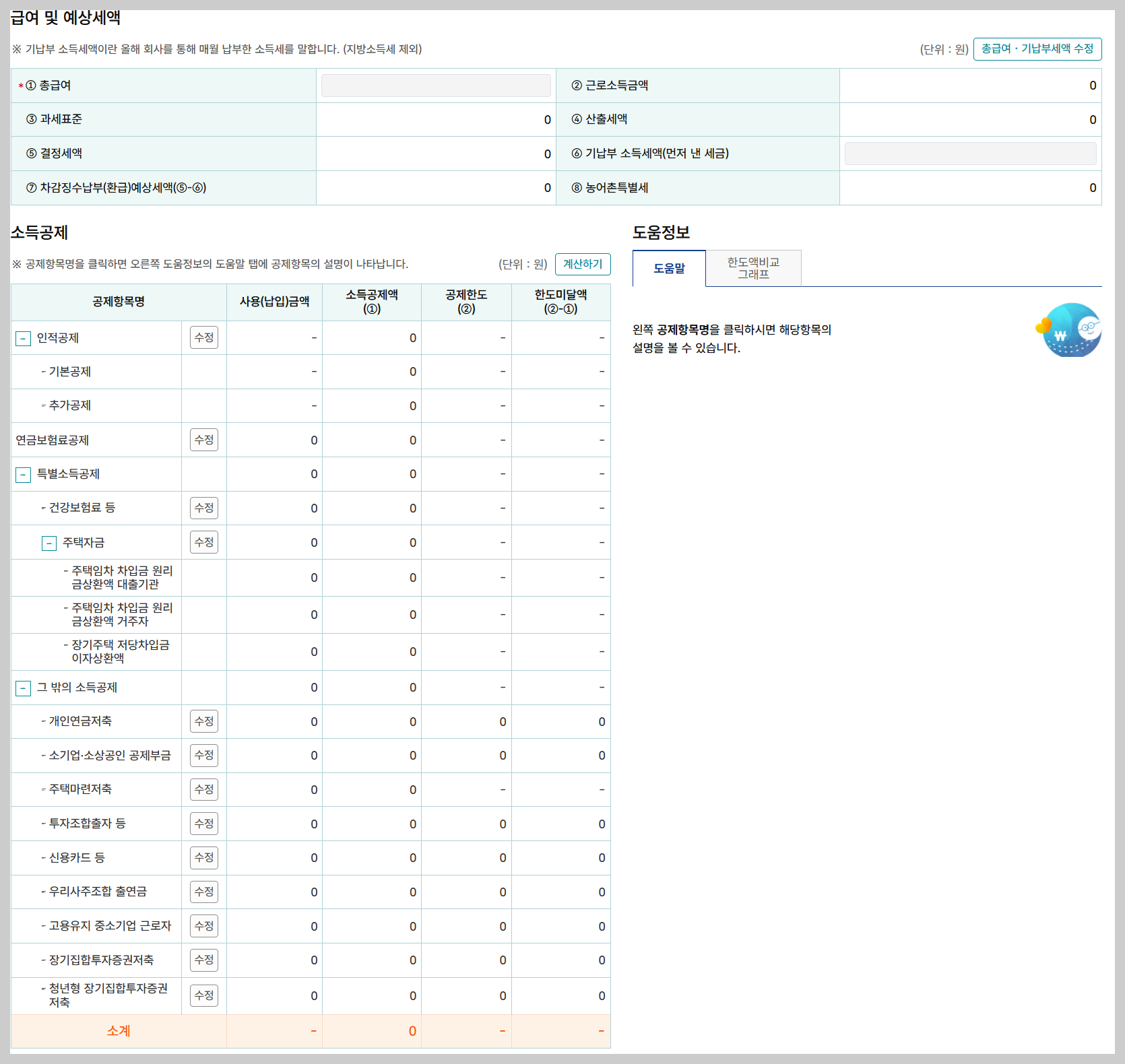 5. 인적공제, 소득공제, 세액공제 항목을 선택하고 상세 정보 입력!